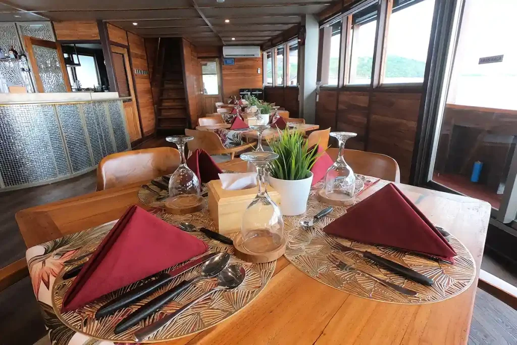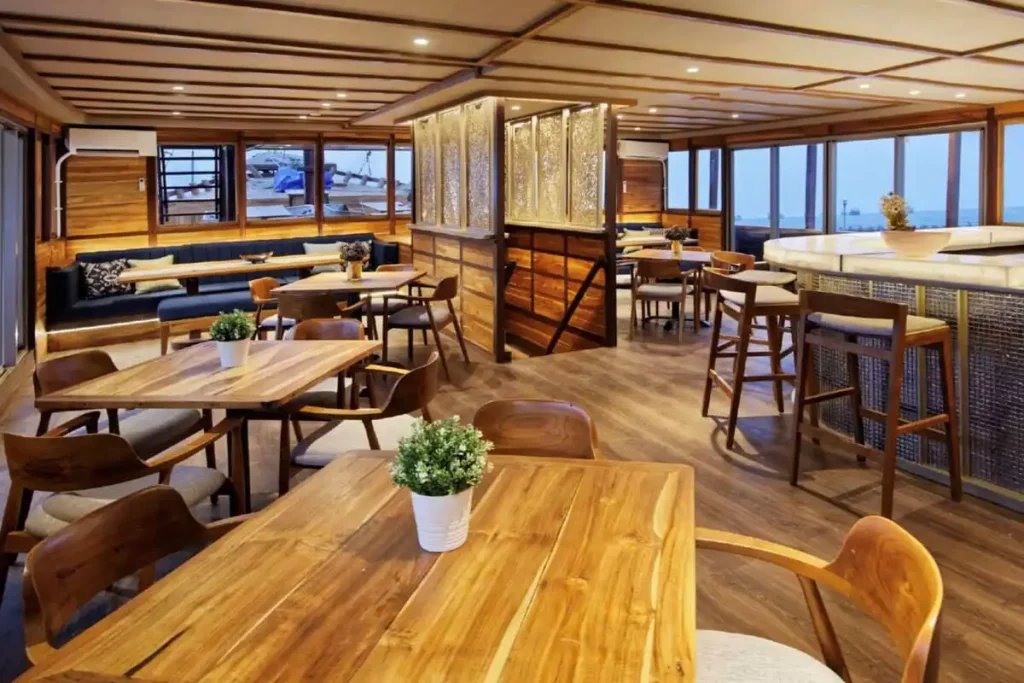 Mutiara have a very spacious lounge area and an air-conditioned restaurant, a diving deck, and two jacuzzies at the Alfresco lounge. It is strongly recommended that guests who wants to do diving, snorkeling, and fishing activities with This magical floating resort will bring you to the amazing destination of the islands of Komodo National Park.